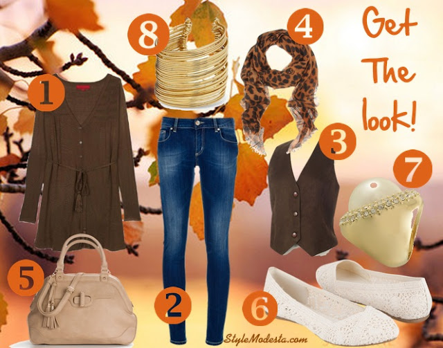 Since fall is fast approaching I thought I'd better get used to the colors of the fall by wearing them and loving them! I chose simplicity and the regular girly look for this outfit. Brown and an A line cut chiffon top were the key aspects. Jeans helped give it a casual, back-to-school look and a suede and studs vest and an animal print hijab made the whole thing!